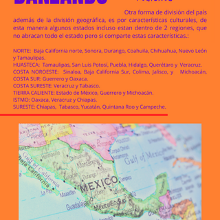 Regiones mexicanas 2mastlatoani9 oct 20221 Min. de lecturaDe acuerdo a los especialistas en Danza folklórica Mexicana, las regiones en México pueden dividirse de acuerdo a su ubicación geográfica aquí te indicamos la división de acuerdo